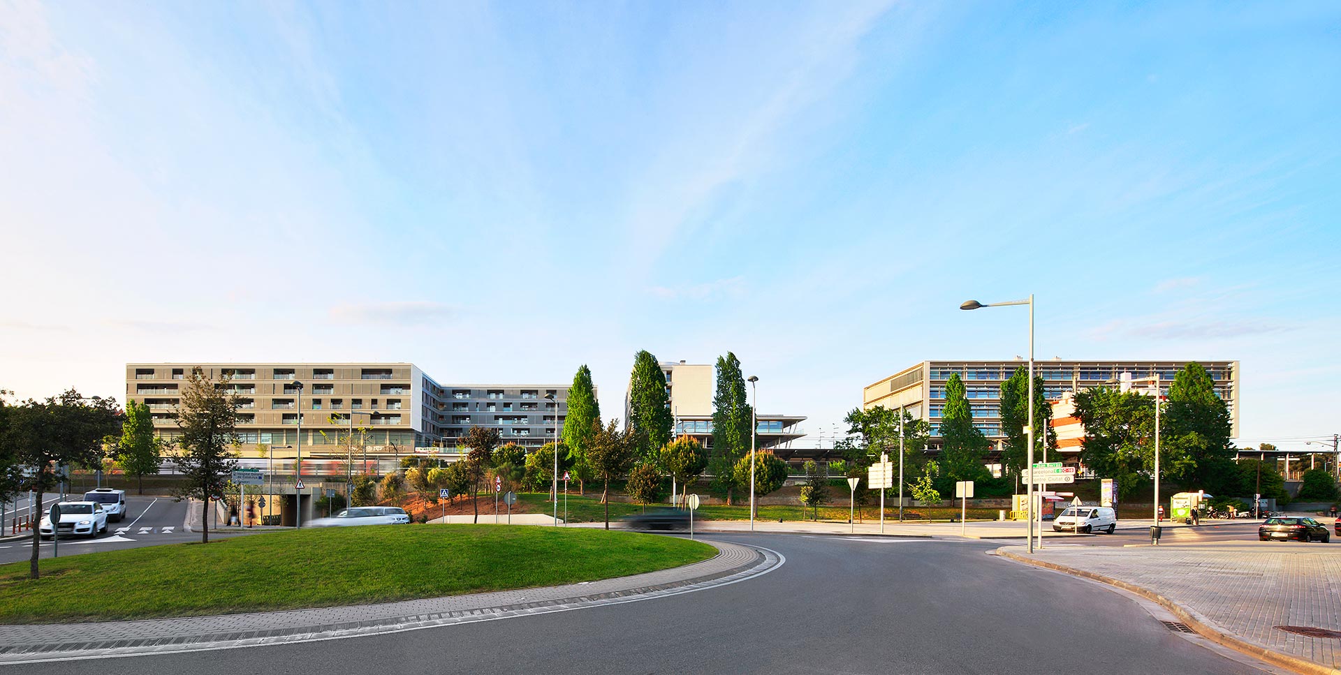 El ámbito en el que se desarrolla esta obra se sitúa junto a la estación de Mirasol de la línea Barcelona- Terrassa, una franja lineal orientada a mediodía, con un importante salto topográfico que determina la solución adoptada.